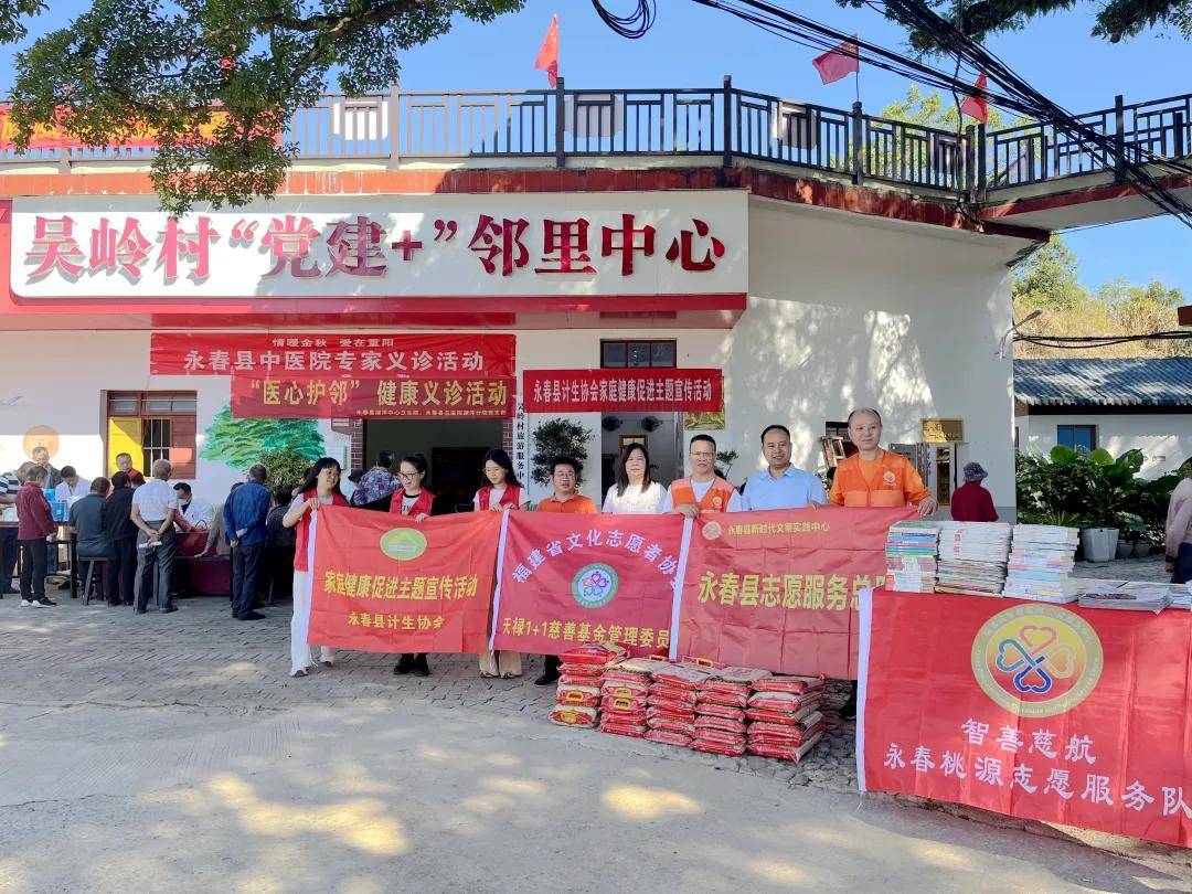 岁岁重阳,今又重阳。10月29日重阳佳节,一场凝聚多方爱心的公益行动在永春吴岭村温情启幕。为传承中华传统美德、弘扬“奉献、友爱、互助、进步”的志愿精神,福建省智善慈航公益服务中心·永春桃源志愿服务队携手天禄1+1慈善基金、东南早报、东南品牌网,联动永春中医院、永春县湖洋中心卫生院及永春县总医院湖洋分院党支部,以“情暖重阳·福满吴岭”为主题,用多样化服务为村里的老人们送上暖心节日关怀。